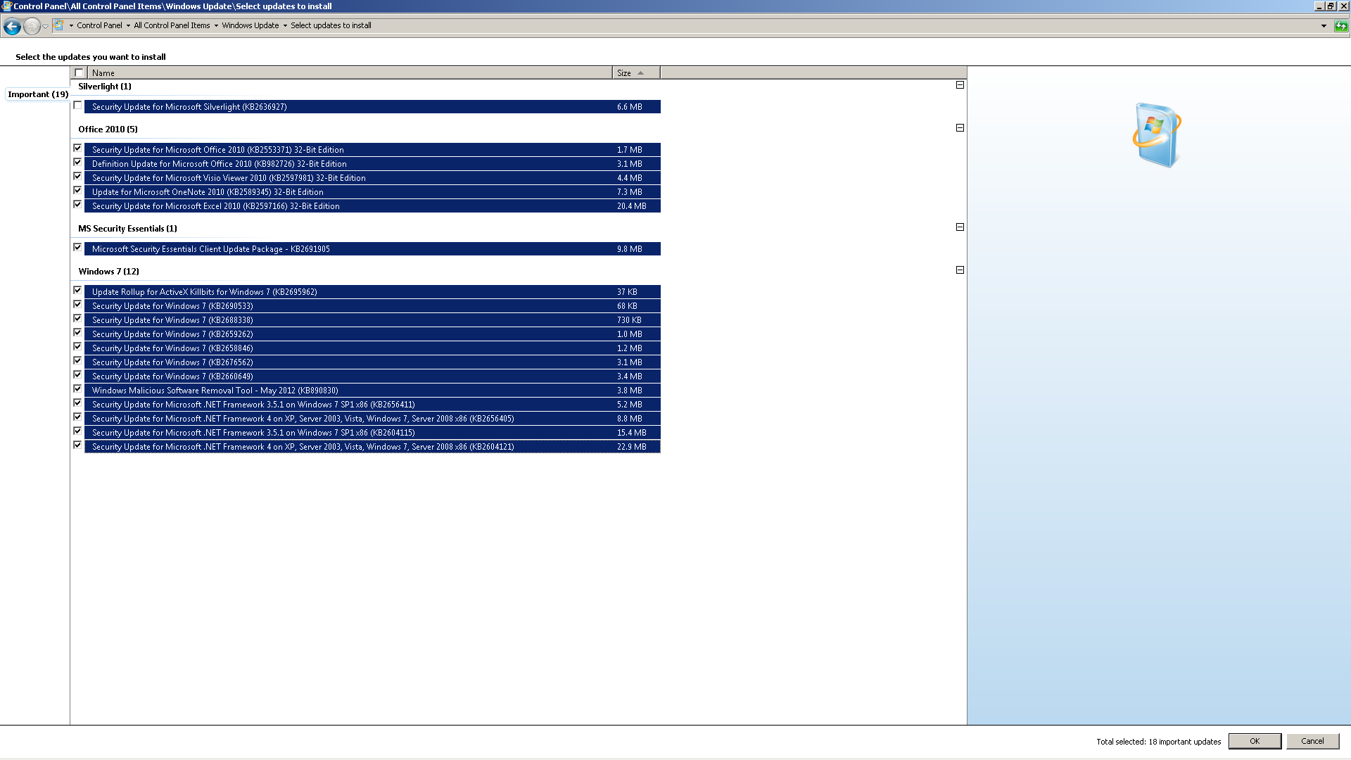 Wed 05/23/2012 12:45:34.22 - Info: Downloaded/validated 93 dynamically determined updates for ofc glb