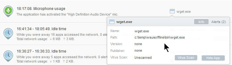 I got this warning twice now that the application wget.exe is activating my mic. What's up?