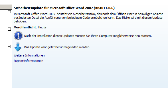Im verlinkten CVE ist Excel 2007 mit aufgelistet.https://heise.de/-3890381 wrote:Aufgrund eines Fehlers ist die Makro-Funktion in Excel nicht verlässlich deaktiviert. Wenn Angreifer Opfern eine Tabelle mit Makros unterschieben und sie dazu bringen diese zu öffnen, soll Excel die Makros nicht blocken. Über Makros gelangen vor allem Erpressungstrojaner auf Computer. Microsoft stuft den entsprechenden Patch als "wichtig" ein. Diverse Sicherheitsforscher sehen das als gefährlicher an.