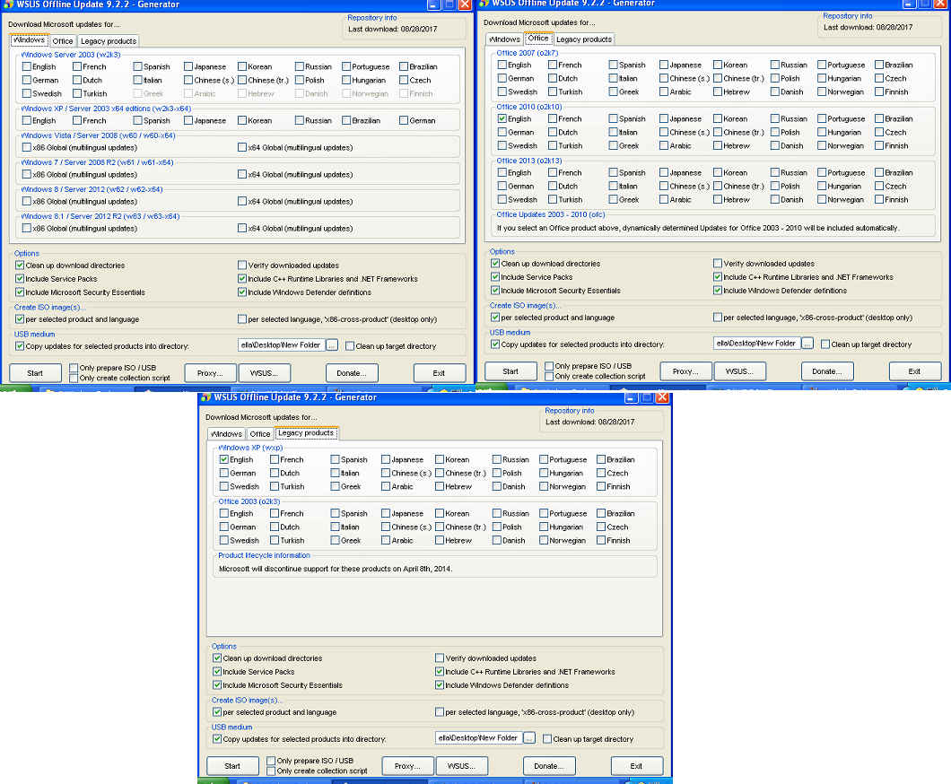 Ideally I would like to make a folder/ISO for Windows XP and Office 2010 of all offline updates so that I can re-apply them to this/another computer when I rebuild in the future.