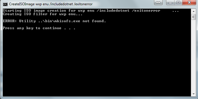 Now onto my current problem, I recently uninstalled my older version (6.4?) and installed v7.4.2 (figured it'd be healthier than just updating as it'd been a while!) the install package doesn't seem to have mkisofs.exe included in the .zip so attempting to create an ISO I've been greeted by the below screen: