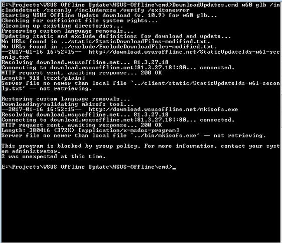 Wed 01/11/2017 13:24:29.73 - Info: Starting WSUS Offline Update download (v. 10.9) for w60 glb