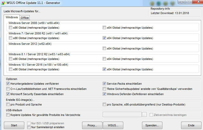 ich lasse den Updategenerator mit folgenden Einstellungen laufen: