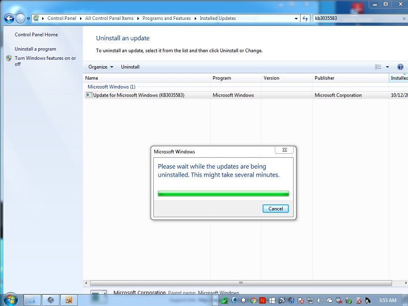 1) KB3035583 == Windows 10 ad-update (GWX)
