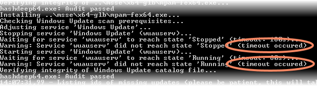 Bei allen Update-Installationen, die ich derzeit durchführe (mit trunk r897), wird beim Beenden und Starten des Windows-Update-Dienstes (wuauserv) immer das Timeout erreicht, unabhängig vom Betriebssystem und dem PC (Win 7, Win 8.1, Win 10, jeweils 64-Bit).