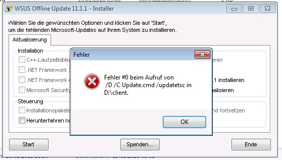 "Fehler #0 beim Aufruf von /D /C Update.cmd /updatesc in D:\client"