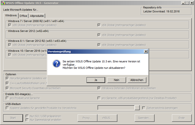 Also bei mir funktioniert das WOU-Update beim starten der UpdateGenerator.exe problemlos, ohne dass ich irgendwelche INI Einträge verbiegen musste o.ä.