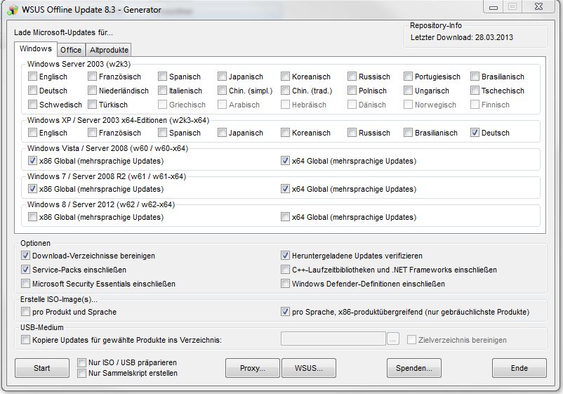 ich habe im Update-Generator beide System angeklickt und ISO-Images produktübergreifend (siehe Bild). Es wird auch nur ein Image erzeugt, welches ...x86 heißt. Verstehe ich das richtig, das bei dieser Variante nur x86 Systeme berücksichtigt werden?