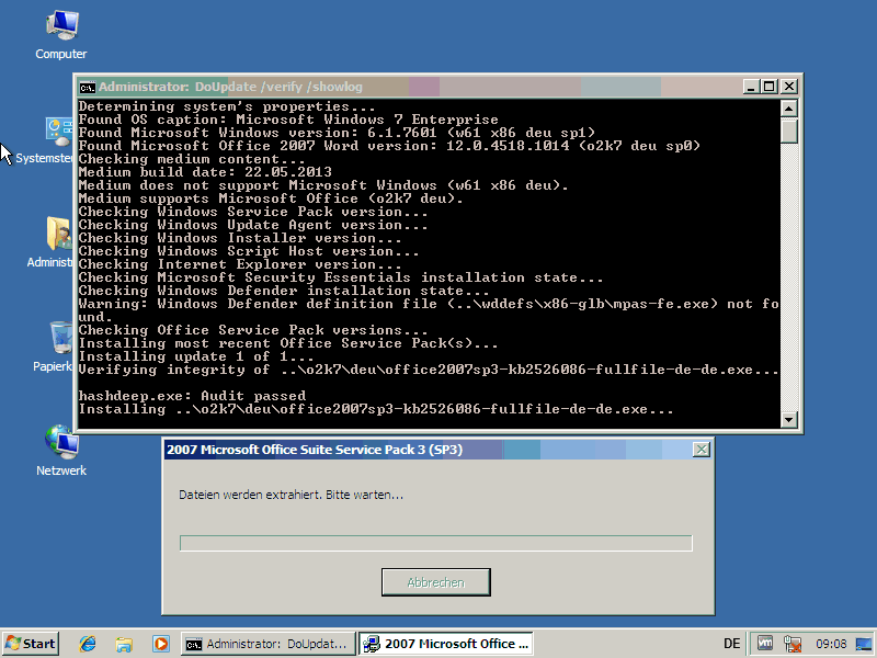 Installed o2k7 on windows 7 x86 und ran wsusou. It told me, that the Sp was installed successfully, but in the next run it tried to install it again (again successfully).[...]