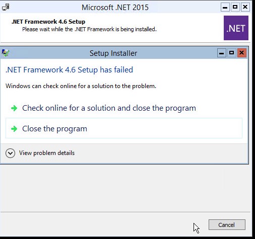 Tue 08/18/2015 9:38:20.93 - Warning: Installation of ..\dotnet\NDP46-KB3045557-x86-x64-AllOS-ENU.exe /passive /norestart /lcid 1033 failed (errorlevel: 1)