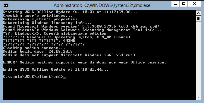 Jetzt habe ich ein Update für ein russ.Windows 8 versucht und WSUS meldete: Kein Support.