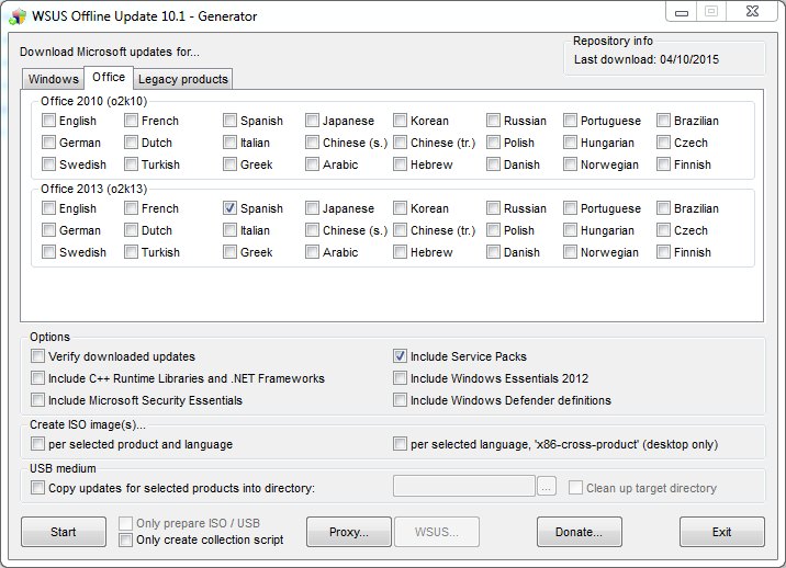 04/10/2015 9:26:23,75 - Info: Starting WSUS Offline Update download (v. 10.1) for o2k13 esn
