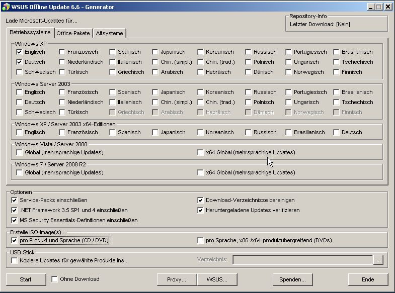 Jetzt läuft alles. Hier noch mal die Einstellungen, wie ich die Downloads von WSUSOfflineUpdate.NET getätigt habe: