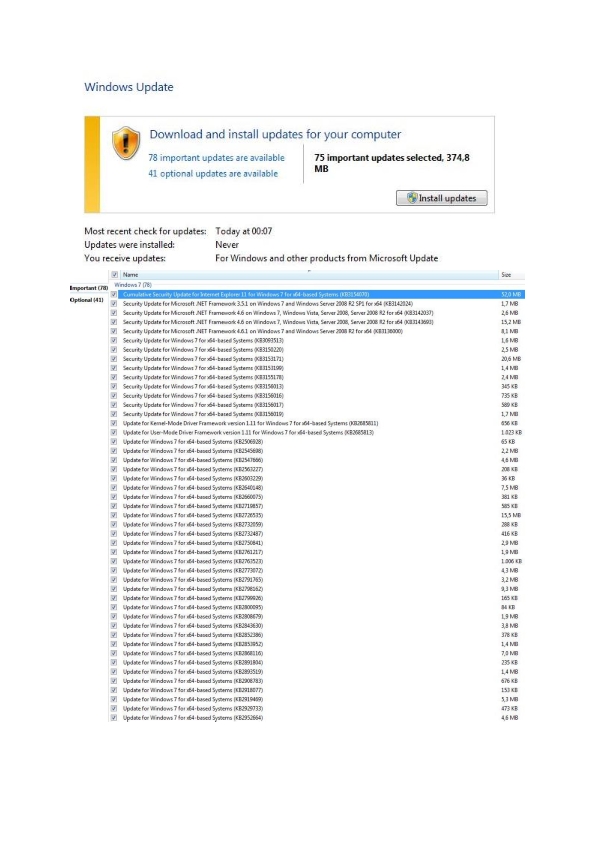 viewtopic.php?f=7&t=172Dies bedeutet, dass nicht alle Updates installiert werden. Da Sie Windows 7 verwenden, sollten Sie in der Lage sein, diese Liste zu verwenden, um die meisten Updates, die Sie brauchen, zu erhalten.