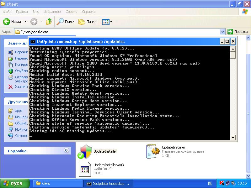 The folder with wsus and all downloaded updates is located on the network share. From the client computer I go to that share and run UpdateInstaller.exe. I press start and see in cmd prompt this (attached). Нow should I understand it?