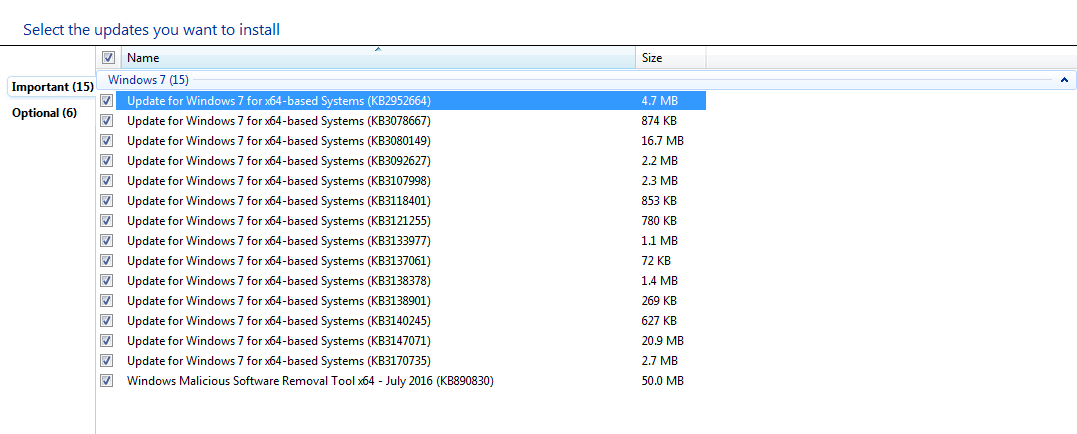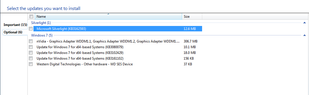 However, Windows updates tells me I still have 15 important updates and 6 optional ones left. Can you explain that? Since WSUS lists one as blacklisted and can't find the others, should I let them alone and not install them?