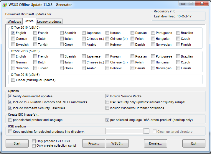 Fri 10/13/2017 13:50:18.54 - Info: Starting WSUS Offline Update (v. 11.0.3)