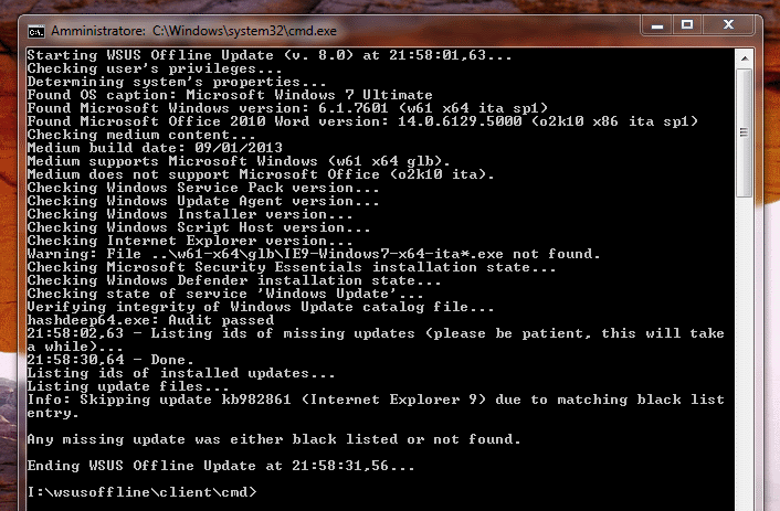 I fully updated WSUS Offline 8 for Windows 7 x32 and x64