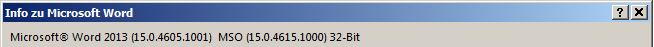13.08.2014 20:45:28,62 - Info: Found Microsoft Office 2013 Word version 15.0.4569.1504 (o2k13 x86 deu sp1)