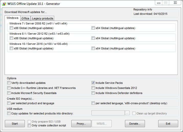 04/10/2015  9:34:53,32 - Info: Starting WSUS Offline Update (v. 10.1)