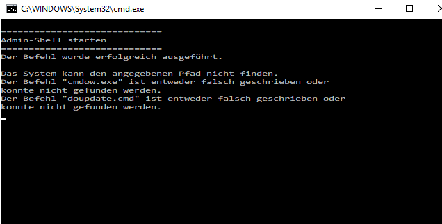 Leider wird die doupdate.cmd irgendwie nicht gestartet. Man sieht auch leider keine Fehlermeldungen. Auch im Hintergrund läuft nichts, da sonst die Log-Datei schreiben würde.