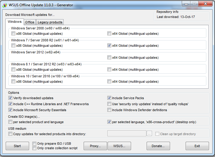 Fri 10/13/2017 13:50:18.54 - Info: Starting WSUS Offline Update (v. 11.0.3)